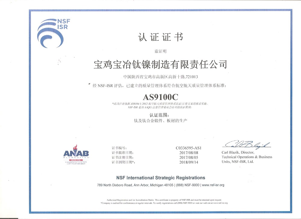 Congratulate precious baoji titanium nickel AS9100C smelting made
