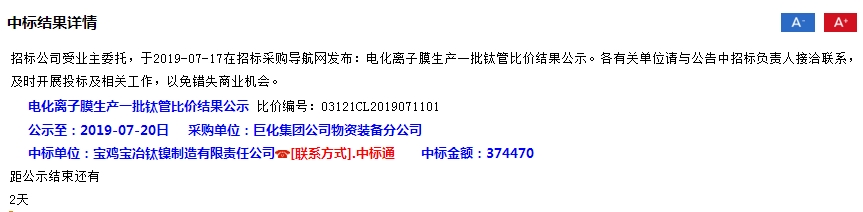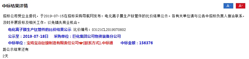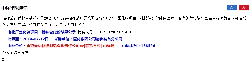 近期寶雞寶冶鈦鎳制造有限責(zé)任公司鈦管道、鈦管件連續(xù)中標(biāo)